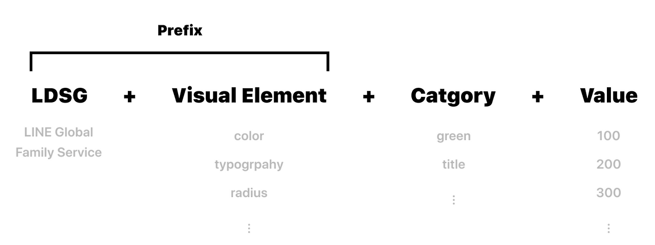 먼저 컬러에 대한 의미를 명확하게 하기 위해 디자인 토큰에 대한 네이밍을 지어준다. 이때 명칭의 기준을 라인 LDSG를 많이 참고했다.