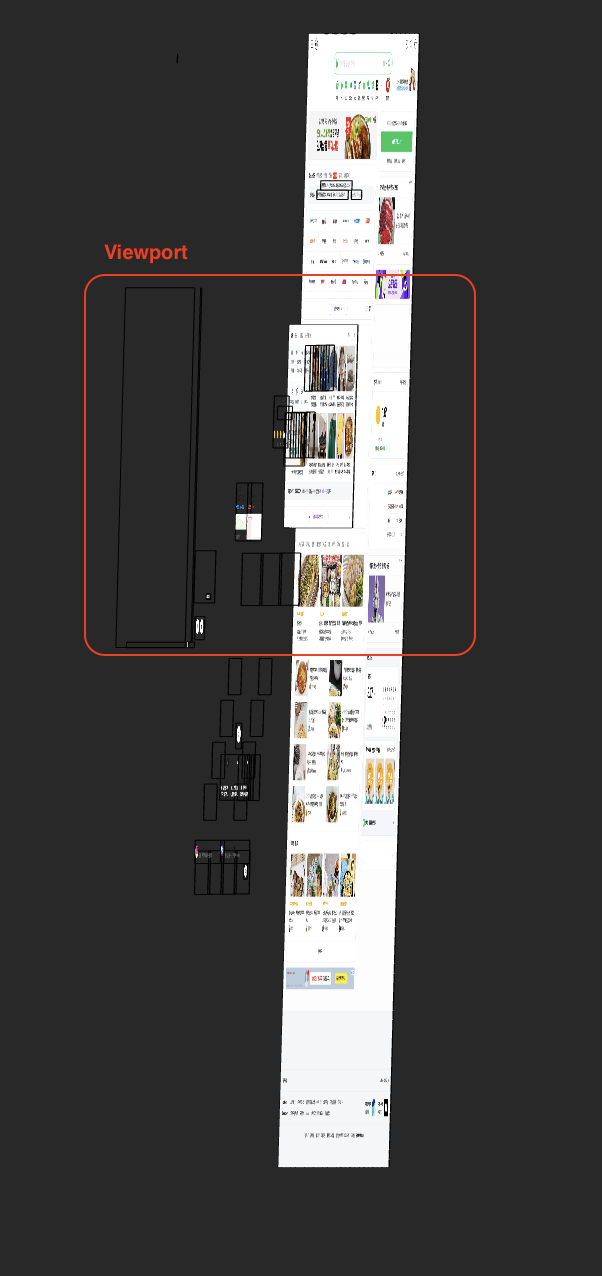 네이버 메인 페이지를 가져와 봤다. 이미지를 보게되면 뷰포트(Viewport) 영역이 현재 사용자가 바라보고 있는 화면의 영역이다.