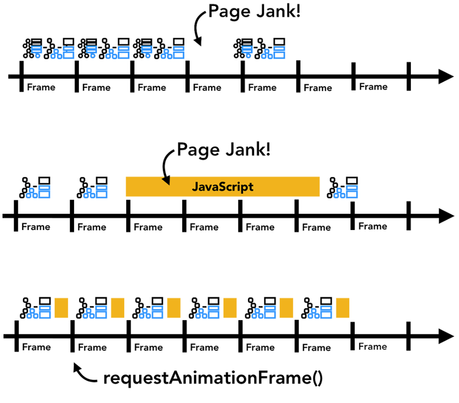 requestAnimationFrame를 사용하는데 어떤 원리 때문인거지? - 스크롤하거나 고해상도의 화면에서 페이지를 빠르게 보여주고, 버벅거림 없이 어떻게 사용자에게 제공할 수 있는 거지?