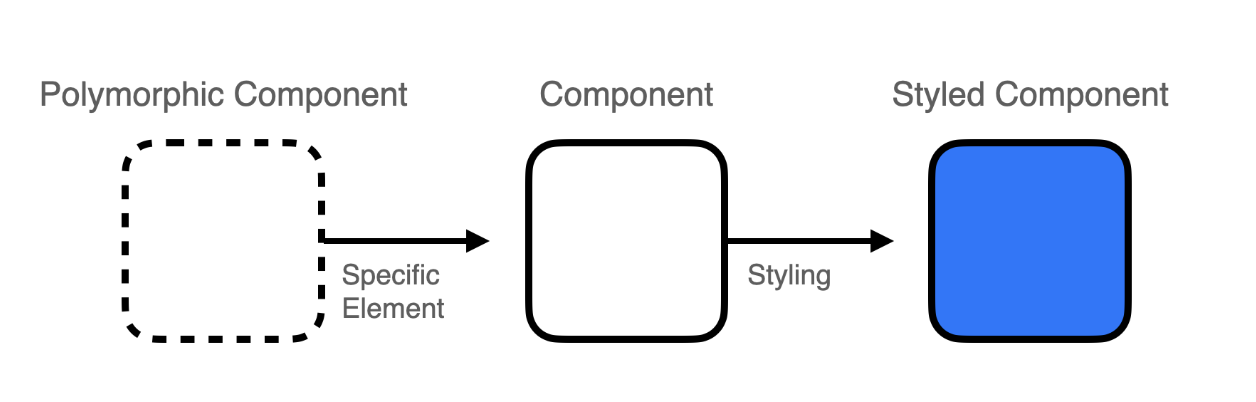 즉 동일한 디자인 UI 컴포넌트를 상황에 맞게 시멘틱한 속성을 다르게 사용할 수 있고, button 태그이지만 a 태그처럼 특수한 상황에 따라 다양한 방식으로 사용할 수 있는 특수한 용도로 사용할 수 있게 추상화한 구조를 말할 수 있다. 쉽게 말해서 다형성(Polymorphism)이란 하나의 일만 하는 컴포넌트를, 추상화를 통해 Polymorphic한 형태의 컴포넌트를 말한다.