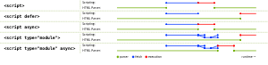 참고로 type="module" 속성은 기본적으로 지연되지만 DOM에 <script> 마크업을 삽입하여 로드된 스크립트 사용하면 async 스크립트처럼 작동한다.